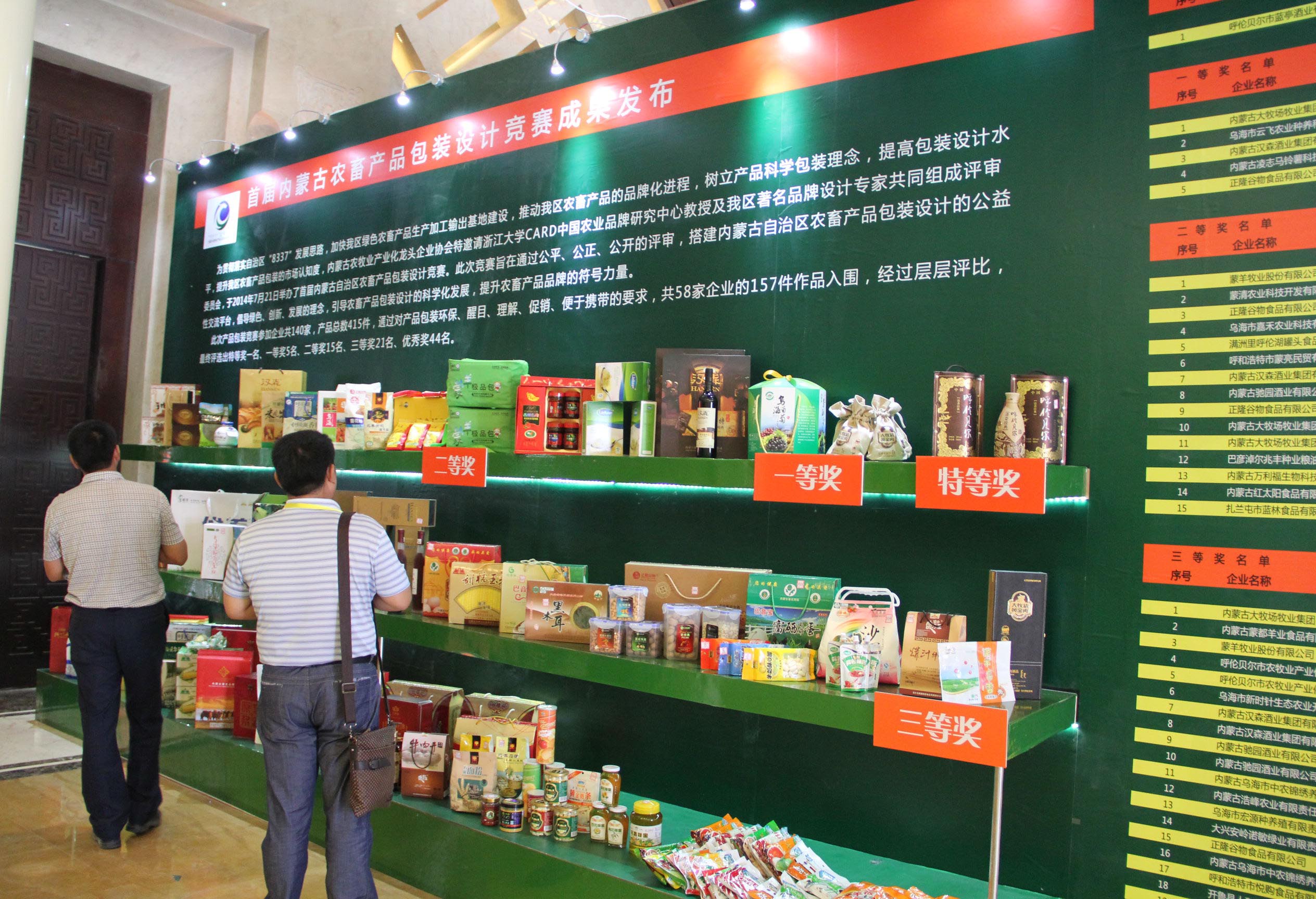 本次綠博會(huì)的最大亮點(diǎn)在于由農(nóng)牧業(yè)廳授權(quán),在中國·內(nèi)蒙古綠色農(nóng)畜產(chǎn)品博覽會(huì)組委會(huì)的大力支持下,協(xié)會(huì)認(rèn)定的2014(第二屆)內(nèi)蒙古“名優(yōu)特”農(nóng)畜產(chǎn)品名單和首屆內(nèi)蒙古農(nóng)畜產(chǎn)品包裝設(shè)計(jì)競賽獲獎(jiǎng)產(chǎn)品在綠博會(huì)上展出。此次共有76家企業(yè)生產(chǎn)的143個(gè)產(chǎn)品被認(rèn)定為內(nèi)蒙古“名優(yōu)特”產(chǎn)品,共有86件產(chǎn)品在包裝設(shè)計(jì)大賽中獲獎(jiǎng),其中特等獎(jiǎng)1名、一等獎(jiǎng)5名、二等獎(jiǎng)15名、三等獎(jiǎng)21名、優(yōu)秀獎(jiǎng)44名。