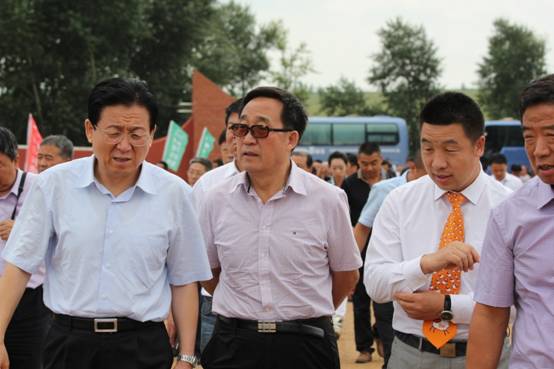 內(nèi)蒙古農(nóng)牧業(yè)廳副廳長(zhǎng)云挨厚(左二)等領(lǐng)導(dǎo)為工廠開業(yè)剪彩