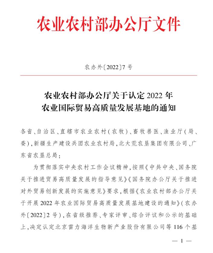 祝賀:我區(qū)5家企業(yè)被認(rèn)定為2022年度農(nóng)業(yè)國際貿(mào)易高質(zhì)量發(fā)展基地